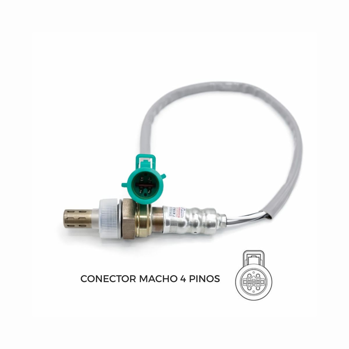 Sonda Lambda conector verde / comprimento 43cm / 4 fios (2 brancos, 1 cinza, 1 preto)