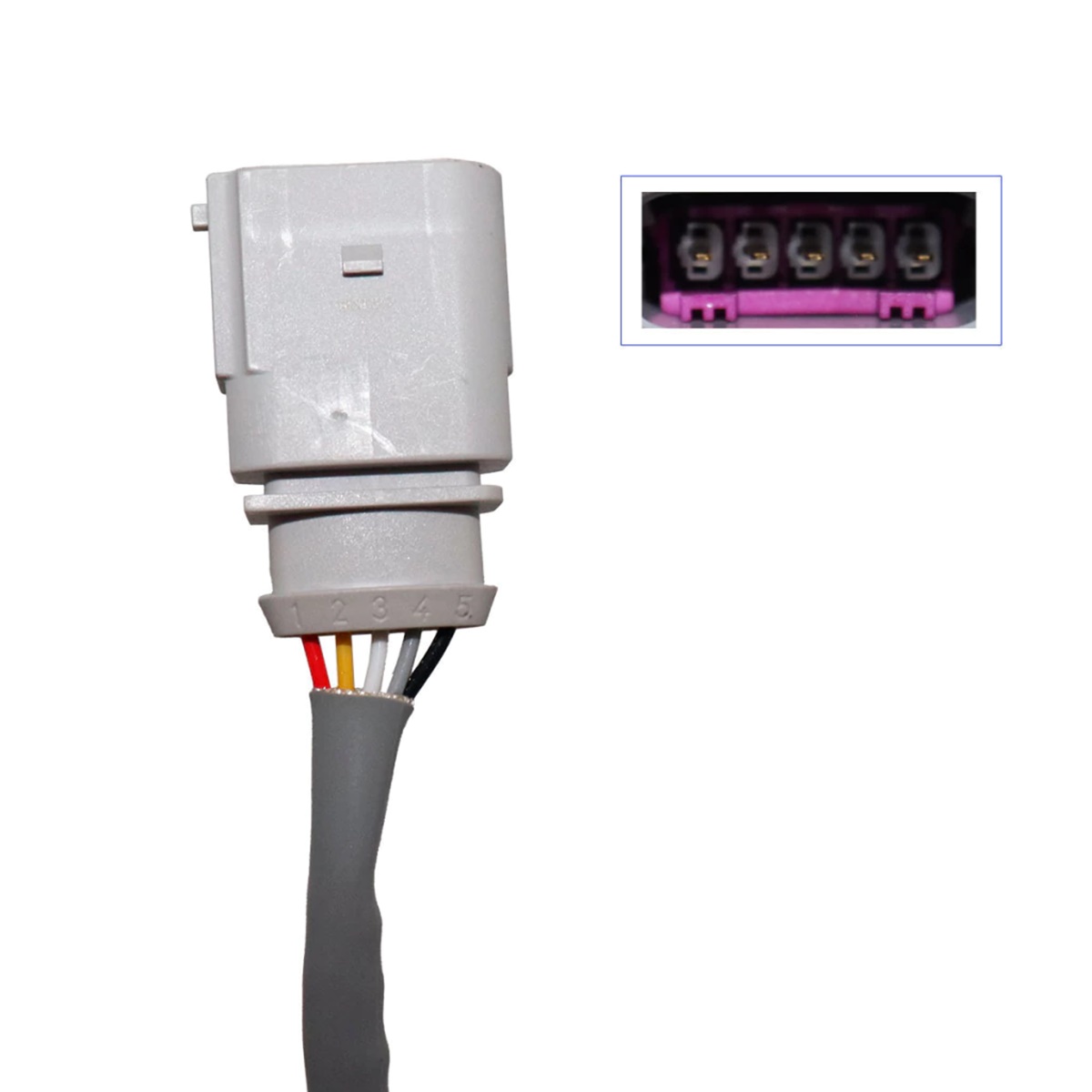 Contém 5 fios: 1 preto , 1 vermelho , 1 branco , 1 cinza , 1 amarelo