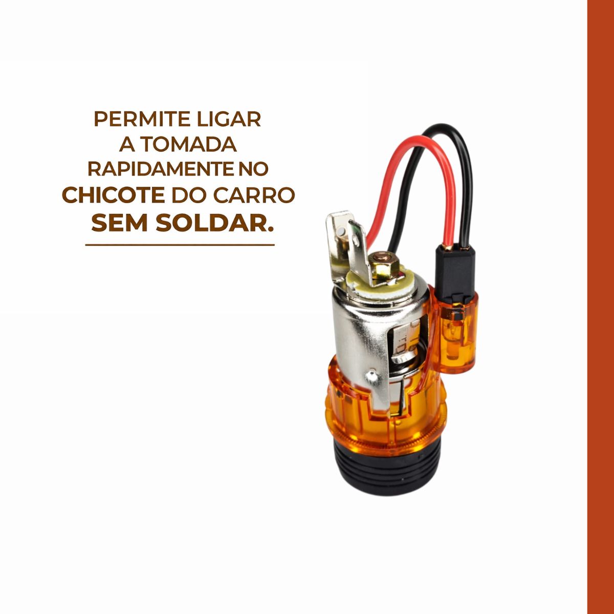 Acendedor de Cigarro Isqueiro Carro Auto Veicular Cor Laranja